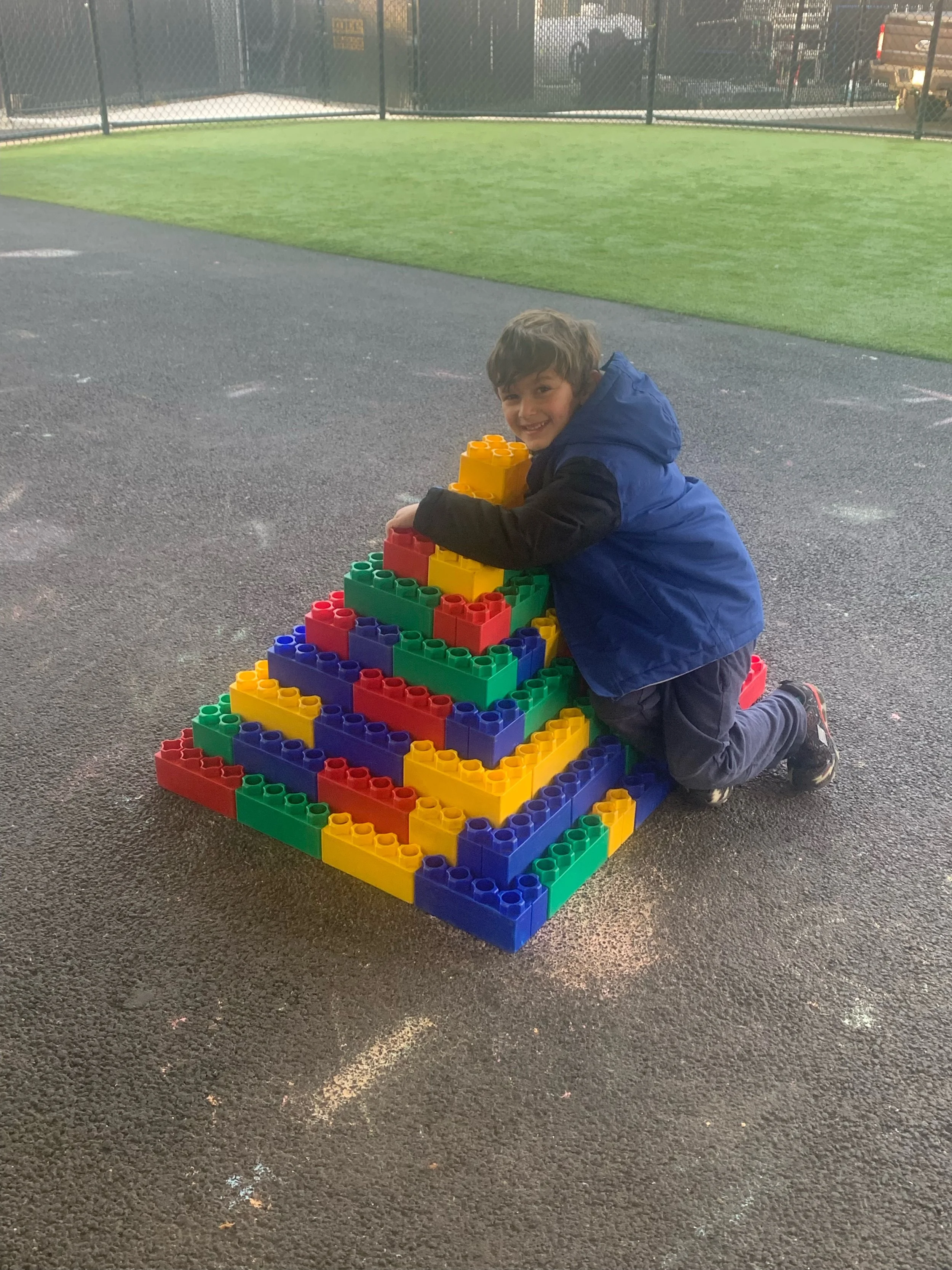 We have a large outdoor turf play yard for soccer, kickball, frisbee, or any game you can imagine along with climbing towers, slides, and play houses. In addition, we have a kid sized basketball court for any interested in playing basketball with their friends, or drawing with chalk. There are plenty of spaces and activities for those interested in getting some fresh air when the weather is nice!